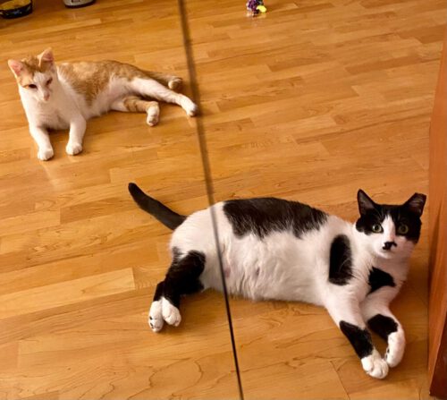 Caramel und ich wurden zusammen auf einem Hof gefunden und in Sicherheit gebracht. Wir waren schon immer ein Team, aber mein lieber Freund Caramel hatte es nicht leicht. Er hatte eine schlimme Herpes-Virus-Infektion an seinem linken Auge 😿. Der arme Kerl musste sogar das dritte Lid entfernt bekommen, das ist diese kleine Bindehautfalte, die das Auge feucht hält.