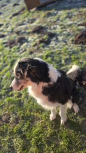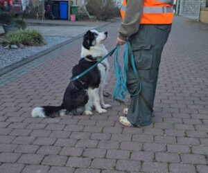 Sie zeigt bei Aufregung oder ihren „5 Minuten“ typisches Hütehund-Verhalten: Es kann passieren, dass sie einem in die Füße zwickt, man bekommt sie aber sehr schnell umgelenkt. Das kann mit Abwenden, eine alternative Übung machen lassen oder ähnlichem unterbrochen werden. Aus diesem Grund wollen wir Bella aber nicht in eine Familie mit kleinen Kindern vermitteln.