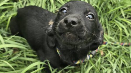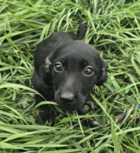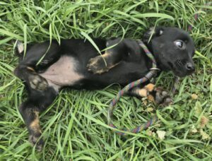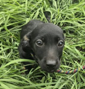 Die Vorgeschichte: Hundemama Primrose war eine Streunerin. Mehrere Wochen lang wurde versucht, sie einzufangen. Als sie aber in einem verlassenen Gebäude ihre 5 Welpen bekam, unter anderem auch die kleine Rue, konnte sie zusammen mit ihren Babys gesichert und ins Tierheim gebracht werden.
