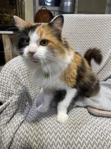 Angela (etwa 5 Jahre alt) ist eine anhängliche und neugierige Katzendame. Sie liebt es überall mitzulaufen und alles zu erkunden. Angela liebt die Nähe zu anderen Katzen und lässt sich auch manchmal auf Spieleinheiten mit ihnen ein.