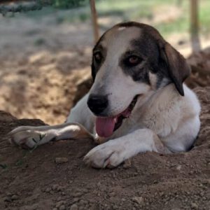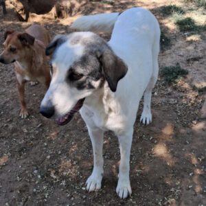 Arianna ist eine imposante, aber ausgesprochen sanfte Hündin Mit ihrem ruhigen Wesen, dem freundlichen Blick und ihrer sozialen Art gegenüber anderen Hunden erobert sie jedes Herz. Sie lebt aktuell in einem größeren Rudel und zeigt sich dort absolut verträglich. Menschen gegenüber ist sie freundlich und ausgeglichen. Sie genießt es, in der Nähe zu sein, drängt sich aber nie auf. Besonders wohl fühlt sie sich an schattigen Plätzen, gerne auch in einer selbst gegrabenen Mulde. Wir vermuten in Arianna einen Herdenschutzhund-Mix, entsprechend suchen wir Menschen mit Erfahrung oder Interesse an diesen besonderen Charakteren. Ein Zuhause in ländlicher Umgebung mit sicher eingezäuntem Garten ist Voraussetzung. Für ein Leben in der Stadt oder einer Etagenwohnung ist Arianna nicht geeignet. Sie braucht keine ständige Action, sondern ein stabiles Umfeld, Ruhe und Menschen, die ihre sanfte Art zu schätzen wissen.