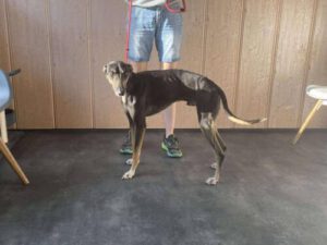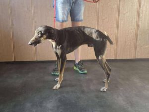 Baber ist freundlich, auch an der Leine zeigt er sich unkompliziert –  ein ganz toller Kerl. Gerne würde er den Zwinger gegen ein behütetes Leben mit ein paar Leckerchen und natürlich Liebe eintauschen. Vermutlich ist Baber ein reinrassiger Magya Agar; eine ungarische Windhundrasse, die für ihr bodenständiges Wesen bekannt ist.