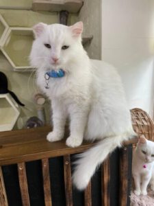 Der flauschige und stattliche Benya (etwa 5 Jahre alt) hat ein eher ruhiges Gemüt. Benya ist ein braver Kerl, der sich gerne streicheln lässt. Benya ist sehr anhänglich und bittet freundlich um Kuscheleinheiten. Er schätzt respektvolles Verhalten und versteht sich gut mit anderen Katzen.