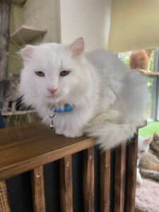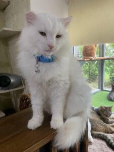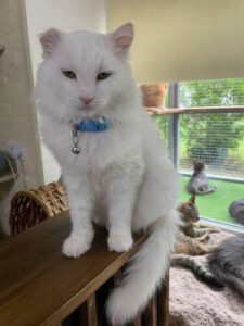 Der flauschige und stattliche Benya (etwa 5 Jahre alt) hat ein eher ruhiges Gemüt. Benya ist ein braver Kerl, der sich gerne streicheln lässt. Benya ist sehr anhänglich und bittet freundlich um Kuscheleinheiten. Er schätzt respektvolles Verhalten und versteht sich gut mit anderen Katzen.