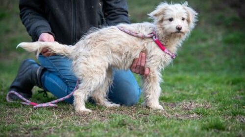 Blanka – Hündin, geb. ca. 12.07.2025, Malteser-Terrier Mischling, ca. 30 cm