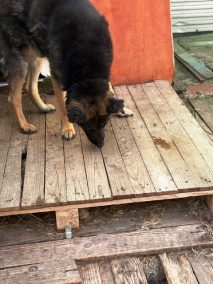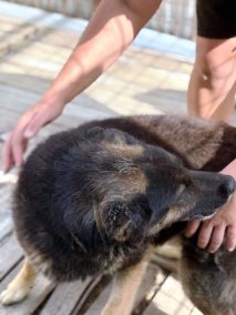 Die Tierschützer aus Csongrád hatten unseren Buba schon länger im Auge. Denn er lebte unter unwürdigen Umständen bei …wie soll man es sagen… eher nicht so tierfreundlichen Menschen. Sie legten ihn an die Kette, schnitten ihm die Ohren ab…vielleicht, weil sie von Fliegen zerfressen waren?… gaben ihm als Unterkunft eine umgekippte Gefriertruhe und kümmerten sich ansonsten überhaupt nicht um ihn. Vielleicht ganz gut für ihn, denn was hätten sie sich sonst vielleicht noch einfallen lassen? Oder haben sie sich etwas einfallen lassen? Vielleicht möchten wir es gar nicht so genau wissen.