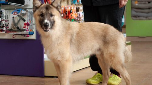 Er liebt lange Spaziergänge und die Nähe zu seinen Menschen. Buddy wurde aus Konstantinovka evakuiert, wo er sich in einem zerstörten Haus versteckt hatte.