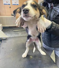Die Welpen waren in einem ärmeren Stadtviertel auf der Straße unterwegs. Sie sind nicht der erste Wurf Welpen einer Hündin. Aber dieses Mal konnte der Besitzer davon überzeugt werden, dass die Hündin kastriert wird. Die Hündin ist ca. 45 cm groß und 17 kg schwer.
