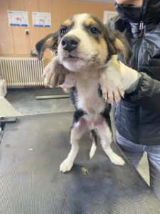 Die Welpen waren in einem ärmeren Stadtviertel auf der Straße unterwegs. Sie sind nicht der erste Wurf Welpen einer Hündin. Aber dieses Mal konnte der Besitzer davon überzeugt werden, dass die Hündin kastriert wird. Die Hündin ist ca. 45 cm groß und 17 kg schwer.