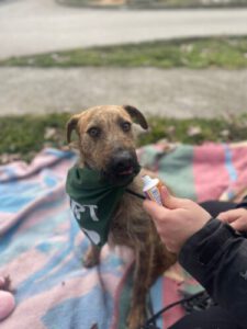 Optisch vermuten wir einen Labrador in den Genen seiner Mutter. Der Papa hatte auf jeden Fall „borstiges“ Fell. Bukta wirkt weniger schüchtern als seine Mama, aber auch er ist noch vorsichtig. Kann man ihm bei seinen bisherigen Erfahrungen nicht verdenken, aber wir sind sicher, dass er in einem liebevollen Zuhause das Leben genießen wird.