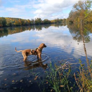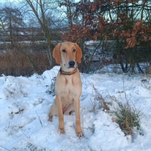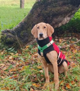 Ross, jetzt Canella, weiblich, Segugio Italiano Mischling, geboren am 15.04.2025, derzeit ca. 57cm, ca. 25kg, ist eine schlanke, bewegungsfreudige, soziale und intelligente Junghündin. Ross liebt den Kontakt zu ihren Artgenossen, spielt für ihr Leben gerne und zeigt sich bei Hundebegegnungen immer interessiert und aufgeschlossen. Wenn sie von ihren Artgenossen Grenzen gesetzt bekommt, akzeptiert sie diese bedingungslos. Canella hat schon viel gelernt in ihrem kurzen Leben: in der Hundeschule ist sie strebsam, kann auf Handzeichen „Sitz“, „Platz“ und „Bleib“ (diese Zeichen hat sie nur nonverbal erlernt!). Sie ist sehr wissbegierig, lernt schnell und liebt den Kontakt mit ihren Menschen. Am Apportiertraining mit dem Dummy zeigt sie großes Interesse und sie hat auch gelernt an ihrem Platz zu bleiben ,bis sie an ihr Futter darf! Beim Autofahren fährt sie am Liebesten in einer Box mit und verhält sich dabei ruhig und gelassen.