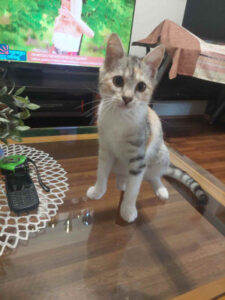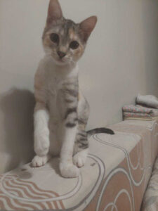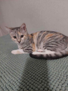 Die kleine, süße Carrie wurde als winziges Katzenbaby ganz allein auf einer stark befahrenen Brücke in Sofia gefunden. Sie schrie und war völlig verängstigt, vermutlich war sie von einem Auto gefallen und wie durch ein Wunder unverletzt geblieben. Sie wurde sofort gerettet und in eine Pflegestelle gebracht. Dort fühlte sich Carrie sofort wohl, erkundete alles und erklärte sich kurzerhand zur Prinzessin des Hauses.