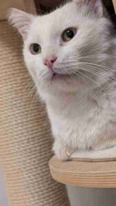 Ich habe ihn gefunden (oder besser gesagt 😀), er hat mich im Garten meiner Eltern gefunden. Seine Ohren waren durch die Sonne geschädigt, besonders das eine. Wir waren in der Tierklinik und leider wurde bei den Untersuchungen festgestellt, dass er FIV-positiv ist. Die gute Nachricht ist, dass seine Ohren nicht durch Krebs geschädigt sind, sondern nur durch die Sonneneinstrahlung aufgrund seiner weißen Farbe. Also habe ich ihn in ein Katzenhaus gebracht und jetzt ist er kastriert, geimpft und bereit für ein neues Zuhause. Vom Charakter her ist er ein wunderbarer, sozialer und ruhiger Kater, der ein richtiges Zuhause verdient. Er lebt momentan mit 13 anderen Katzen zusammen, ist aber nicht besonders an ihnen interessiert. Er sehnt sich mehr nach menschlicher Zuneigung als nach der Zuneigung anderer Katzen, daher ist es kein Problem, ihn als Einzelkatze zu vermitteln. Er kennt auch Hunde, da er draußen lebt. Ich schätze, er ist etwa 5-6 Jahre alt, deshalb habe ich den 03.03.2020 als seinen Geburtstag gewählt.