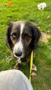 Chuck kommt ursprünglich aus Bulgarien. Er ist dort vermutlich auf der Straße aufgewachsen, bis er von Hundefängern eingesammelt wurde. Die letzten 6-9 Monate hat er dort sehr isoliert in einem Shelter gelebt. Nur wenige Quadratmeter hatte er dort für sich, grub sich im Sand ein Loch und zog sich immer mehr zurück. Tagein und Tagaus hörte er das Hundegebell der anderen Hunde. Die Menschen hatten nur Zeit für kurze Streicheleinheiten. Im Verhalten zeigte er sich dort eher sehr demütig, legte sich hin, zog den Kopf herunter.