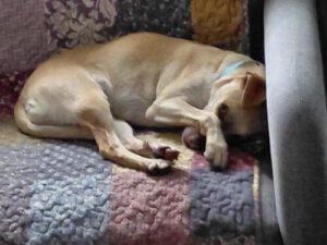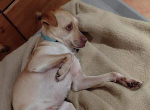 Cinthia mit den wunderschönen bernsteinfarbenen Augen und dem „besonderen Gesichtsausdruck“, man muss sich einfach in sie verlieben. Dazu ist sie eine wirklich sanfte und verschmuste Hündin, eher etwas unterwürfig, die einem gern direkt denn Bauch zum Kraulen hinstreckt. Cinthia lebt bei uns problemlos mit den anderen Hunden zusammen, obwohl sie nicht unbedingt Zweithund werden muss. Auch draußen ist sie interessiert, aber noch recht unsicher, geht aber gut an der Leine und orientiert sich an ihre Menschen. Eine verschmuste Hündin, die im Haus eher unauffällig ist und es liebt im neu erworbenen Körbchen zu kuscheln.