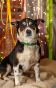 Der verträgliche Den (etwa 6 Jahre alt und 12 kg) hat einen eher ruhigen Charakter. Mit seiner liebevollen Art kommt er mit allen gut aus.