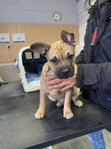 Dieser hübsche Welpe ist ein Sonnenschein. Stets freundlich. Devil möchte ein für Bullys artgerechtes Leben führen. Wir vermuten eine französische Bulldogge in ihm.