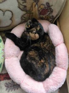 Im Frühjahr diesen Jahres stellte ich fest, dass Nancy schlecht fraß und stark abgenommen hatte. Beim Tierarzt stellte sich ein Abszess im Zahnbereich durch einen eingeklemmten Hühnerknochen heraus, der erfolgreich behandelt werden konnte. Seitdem lebt Nancy in meinem Katzenhaushalt und hat sich wunderbar erholt.