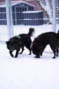 Emma ist die offenere und schlau, sie lernt sehr gerne und braucht das auch, sie geht auch schon am Geschirr. Neue Sachen verunsichern Emma noch, da braucht man etwas Geduld. Doch hat sie sich einmal überwunden, ist das alles kein Problem mehr. Alle drei brauchen Beschäftigung, geistig und körperlich.
