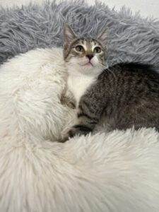 Emmi-Lou ist eine kleine Prinzessin. Sie wickelt alle um ihre kleine Pfote. Sie liebt es, an gemütlichen, kuscheligen Plätzchen lange Schläfchen zu halten und danach wild mit Brüderchen Evin und Schwesterchen Emily zu toben und Unfug anzustellen.