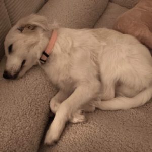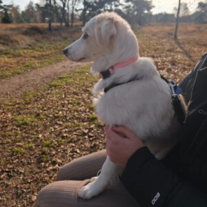 Seit dem 05.12.2025 befindet sich Erina in einer Pflegestelle. Ihre Pflegemama schreibt über sie: „Unsere kleine Pflegehündin Erina, die wir bei uns liebevoll Hope nennen, ist auf der Suche nach ihrem Für-immer-Zuhause. Sie ist eine welpentypisch verspielte, zuckersüße und neugierige Maus, die mit ihrem liebevollen Wesen schnell alle Herzen erobert. Hope ist bereits zu etwa 90 % stubenrein und schläft nachts schon rund 7 Stunden am Stück. Tagsüber gehen wir aktuell alle drei Stunden kurz mit ihr raus, was sehr gut funktioniert. Im Alltag lernt sie bei uns gerade das kleine Hunde-1×1, die Leinenführigkeit wird von Tag zu Tag besser und auf ein klares „Nein“ hört sie bereits. Bei Spaziergängen ist sie sehr neugierig jedoch auch vorsichtig. Autofahren klappt mit ihr ganz entspannt und problemlos. In der Wohnung kommt sie sehr gut zur Ruhe und sucht auch Nähe zu uns. Natürlich möchte sie aber auch mal spielen und beschäftigt werden. Anfangs zeigt sie sich neuen Situationen oder fremden Menschen gegenüber noch ein wenig schüchtern, taut aber relativ schnell auf und wird dann anhänglich und offen. Bei unserem Ersthund orientiert sie sich stark und sucht viel Nähe, weshalb ein vorhandener Hund im neuen Zuhause schön wäre, aber kein Muss ist. Sie ist einfach ein kleiner Sonnenschein, immer neugierig und voller Lebensfreude. Ein Kennenlernen ist sehr gerne möglich, denn uns ist wichtig, dass Hope in ein liebevolles Zuhause kommt, in dem sie ankommen und weiter wachsen und lernen darf.“