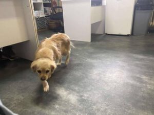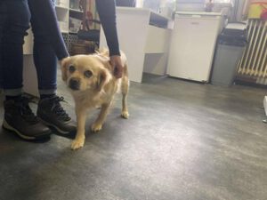 Die kleine Hündin war im Feld zwischen Dörfern unterwegs.