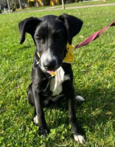 Flecha begrüßt alle Zwei-und Vierbeiner immer fröhlich und gutgelaunt ohne dabei zu aufdringlich zu sein. Sie ist für ihr Alter schon sehr vernünftig und angenehm, lernt schnell und hat immer gute Laune. Flecha begleitet die Spaziergruppe am Wochenende schon mit voller Begeisterung und geht dort schon vorbildlich an der Leine – eine echte Streberin. Im Tierheim im Auslauf spielt sie gerne mit den anderen Hunden und freut sich über Streicheleinheiten von den Helfern, wovon sie gar nicht genug bekommen kann. Flecha würde sicherlich auch ein Topfamilienhund abgeben, denn für jeden Spaß ist sie sofort zu begeistern.