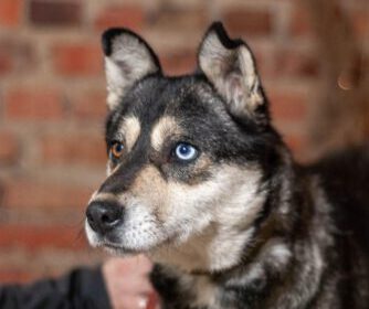 Die Huskys(mixe) Sky und Goldy wurde von Soldaten genau an der Front gefunden und in die Auffangstation gebracht.