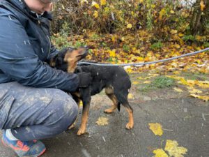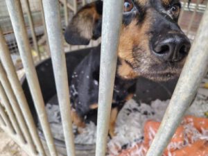 „Mein Name ist Justizia! Das ist die römische Göttin der Gerechtigkeit. Gerechtigkeit hat die Hündin nicht erfahren. Aber mit diesem schönen Namen freut sie sich auch auf ein gemütliches Zuhause.