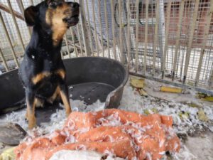 Justizia ist ein sensibles Mädchen. Der Stress und Lärm in der Station haben ihr sehr zugesetzt. Noch fühlt sie sich nicht ganz sicher in der Station. Anfangs war sie sehr schüchtern, zeigte sich dann aber freundlich, wenn man ihr mit Ruhe begegnet. Dann kann sie sich über Zuneigung sehr freuen. Wir denken, dass Justizia, wenn sie erst einmal in ihrem Zuhause angekommen ist und geliebt wird, eine aktive, aber auch wieder entspannte Hündin ist.