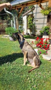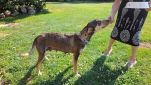 Inzwischen ist Kedves wieder völlig gesund, etwa 60 cm groß und wird als Magyar Agar-Husky-Mix vermutet – eine Mischung, die sowohl Ausdauer als auch Intelligenz mitbringt. Kedves ist eine freundliche, menschenbezogene Hündin, die Nähe und Zuwendung sehr genießt. Gleichzeitig braucht sie ausreichend Bewegung und geistige Beschäftigung – typisch für Hunde mit Jagd- und Lauftrieb.