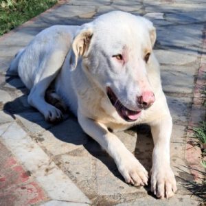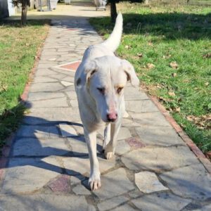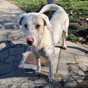 Lakis ist ein aufgeschlossener, freundlicher und liebevoller junger Rüde. Er liebt es, mit anderen Hunden zu interagieren, zeigt sich offen gegenüber neuen Situationen und genießt die Nähe zum Menschen. Auch Katzen dürfen gerne zu seinem Freundeskreis gehören. Als Herdenschutz-Mix bringt Lakis jedoch auch die rassetypischen Eigenschaften mit: Er übernimmt eine gewisse Wachfunktion, ist aufmerksam und meldet, wenn sich etwas Ungewöhnliches ereignet. Lakis braucht Menschen, die ihn klar und souverän führen und seine typischen Verhaltensweisen verstehen. Mit seiner Größe von rund 72 cm gehört Lakis zu den größeren Hunden – er ist dabei schlank, sportlich gebaut und hat ein wunderschönes weiß-cremefarbenes Fell mit zarten, beigefarbenen Abzeichen. Für Lakis suchen wir ein Zuhause mit Platz und sicher eingezäuntem Grundstück, bei Menschen, die Freude daran haben, einen Herdenschutzhund zu fördern und zu begleiten. Die sich über seine aufmerksame Art freuen und ihn liebevoll, aber konsequent führen und bereit sind, körperlich und geistig auszulasten.