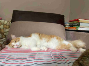 Mit ihrem langen, seidigen Fell und dem flauschigen, eichhörnchenartigen Schwanz fällt Lemi sofort ins Auge. Was sie aber wirklich besonders macht, ist ihre unendliche Zuneigung – Lemi schnurrt wie ein Wasserfall. Sie lebt in der Wohnung, ist stubenrein, liebt es, sich auf Menschen zu kuscheln und unaufhörlich zu schnurren, als ob es ihr größtes Vergnügen wäre, Wärme und Nähe zu teilen. Mutig und neugierig erschrickt sie nicht so leicht und erkundet gerne ihre Umgebung oder jagt Insekten. Sie hat außerdem einen gesunden Appetit und lässt sich eine gute Mahlzeit nie entgehen. Lemi versteht sich wunderbar mit anderen Katzen und zeigt Neuankömmlingen gegenüber stets Neugierde.