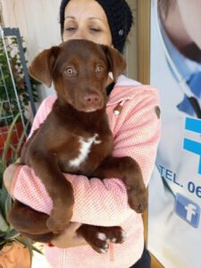Lindt wurde jetzt kurz von Weihnachten vor dem Haus einer älteren Dame ausgesetzt, die mehrere Katzen regelmäßig mit Futter versorgt. Lindt wurde von der älteren Dame aufgenommen und unsere Tierschutzkolleginnen informiert. Heute lebt er bei Aurora und ihrer Familie auf einer Pflegstelle mit Anbindung an Haus und Familie. Er lebt mit großen und kleinen Hunden zusammen, Alten und Jungen, kranken und behinderten Hunden, Katzen, zwei Hausschweinen und Papageien.