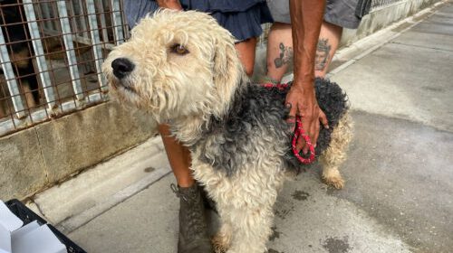 Hallo, ich bin Lonci, eine Airdale Mischlingshündin. Zusammen mit meinem Kumpel Maszola (auch bei uns in der Vermittlung / Website) bin ich im Juni auf die Station gekommen. Mein Halter musste mich/uns aus Altersgründen abgeben. Es wäre schön, wenn wir unser Leben weiter zusammen verbringen könnten.