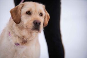 Lumina – Hündin, geb. ca. 25.02.2025, Mama: Labrador Retriever, Vater: Fox Terrier- Puli Mischling, ca. 50 cm