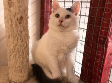 Marvel ist ein auffälliger schwarz-weißer Kater. Er ist etwas schüchterner und braucht etwas länger, um aufzutauen, aber sein umwerfendes Aussehen und seine scharfe Intelligenz gleichen seine anfängliche Zurückhaltung mehr als aus.
