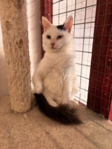 Marvel ist ein auffälliger schwarz-weißer Kater. Er ist etwas schüchterner und braucht etwas länger, um aufzutauen, aber sein umwerfendes Aussehen und seine scharfe Intelligenz gleichen seine anfängliche Zurückhaltung mehr als aus.