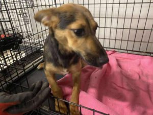 Moka ist jung, freundlich und bereit für das Leben. Das hübsche Mädchen ist zierlich und leicht. Die Fellfarbe lässt auf einen Schäferhund-Mischling schließen, oder vielleicht ein Pinscher. Wer tatsächlich beteiligt war, wissen wir nicht. Auf jeden Fall ist Moka ein typischer Welpe.