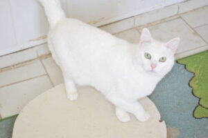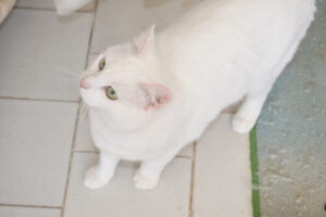 Sie war sehr schmutzig und mager, ihre Ohren waren wund, aber jetzt sieht sie wunderschön aus. Sie ist eine sehr sanfte und verschmuste Katze, nicht der verrückte Typ.