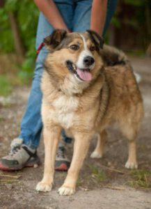 Rostik (etwa 5 Jahre alt und 16 kg) ist ein sehr aktiver und fröhlicher Kerl. Er versteht sich gut mit anderen Tieren und liebt Kinder.
