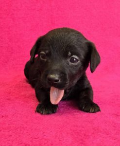 Die Vorgeschichte: Hundemama Primrose war eine Streunerin. Mehrere Wochen lang wurde versucht, sie einzufangen. Als sie aber in einem verlassenen Gebäude ihre 5 Welpen bekam, unter anderem auch die kleine Rue, konnte sie zusammen mit ihren Babys gesichert und ins Tierheim gebracht werden.