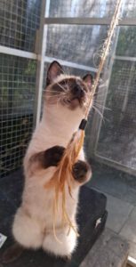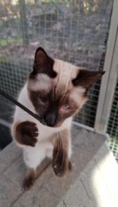 Sally ist eine aufgeweckte, freundliche und schmusige Katze. Leider wurde sie mit einer schweren Bindehautentzündung gefunden. Sie kam sofort auf eine Pflegestelle, wo sie behandelt wurde, die Bindehautentzündung war so schlimm, dass sie einen Sehfehler behalten hat. Sie kann sehen, aber es ist wie ein Schleier, den sie vor Augen hat. Deshalb möchten wir sie nur in reine Wohnungshaltung vermitteln.