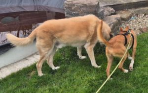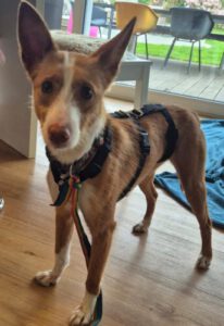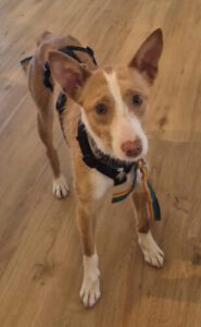 Scarlett – eine ganz sanfte und zarte Hündin. Anfänglich etwas schüchtern, taut sie schnell zu einer kleinen neugierigen Ulknudel auf. In neuen Situationen noch etwas unsicher, erkundet sie voller Neugier ihr neues Leben. Kuscheln steht ganz groß im Kurs und am liebsten würde sie dann in uns hineinkriechen. Scarlett ist stubenrein und eine witzige und schnell aufgeschlossene Hündin, mit all unseren Hunden kommt sie bestens zurecht.