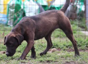 Santal lebte, wie auf einem Bild zu sehen, an einer Kette. Der Besitzer hat sie zum Glück freigegeben und sie konnte erstmal ins Tierheim ziehen. Sie liebt die Nähe ihrer Menschen, genießt Streicheleinheiten und mag es nicht, wenn sie allein ist.