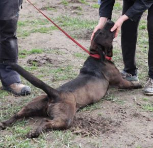 An der Leine läuft sie schon gut – mit etwas Luft nach oben. Sie kann sowohl alleine als auch in der Gruppe mit anderen Hunden zusammen laufen und einfach zusammen sein .