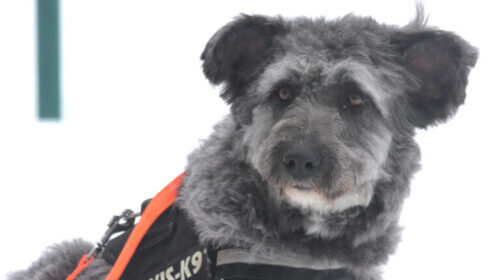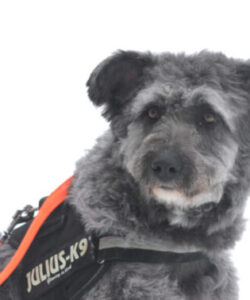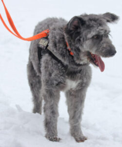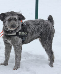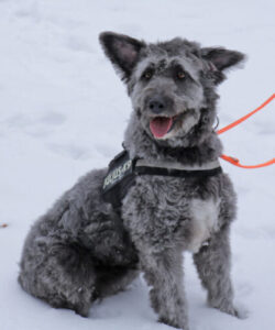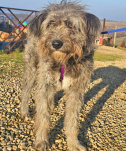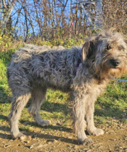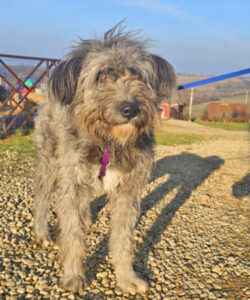 Sie hat eine kurze Rute. Kelly wurde im Juli 2023 geboren und ist 55 cm groß. Sie hat ein graues kurzes Strubbelfell. Im Tierheim wurde sie gechipt, geimpft, kastriert und von Parasiten befreit. Vor ihrer Ausreise bekam sie einen Test auf Herzwürmer mit negativem Ergebnis.