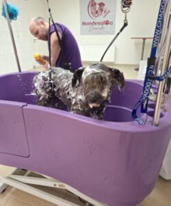 Sie läuft inzwischen ganz gut an der Leine. Bei Hundebegegnungen ist sie noch etwas zurückhaltend. Im Übrigen versteht sich gut mit anderen Hunden.