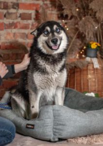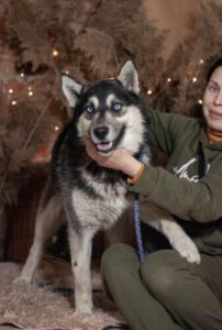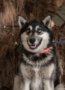Sky ist ein aktiver und gleichzeitig sanfter junger Rüde. Wie für Huskys typisch ist er sehr kommunikativ mit den Menschen.