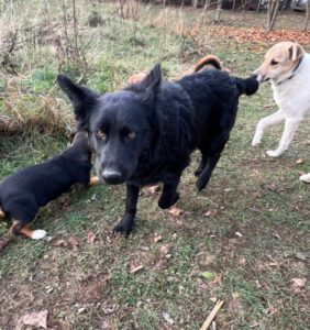 Die hübsche Mischlingshündin Suri haben wir von einer Familie in Ungarn übernommen. Sie wurde als kleiner Welpe zum Spielen für die Kinder angeschafft. Wie so oft hatten diese aber nach ganz kurzer Zeit das Interesse an der Hündin verloren. Es gab keinen Platz mehr für sie in der Familie. So kam sie zu uns und lebt zur Zeit noch in unserem privaten Tierasyl in Ungarn. Suri ist nun alt genug, hat alle notwendigen Impfungen und Papiere und darf mit uns nach Deutschland reisen. Ab dem 17.11. kann man sie bei uns in 56316 Raubach besuchen. Da wir Suris Eltern nicht kennen, wissen wir auch nicht welche Rassen in ihr stecken. Der Tierarzt meinte es könnte etwas schwarzer Schäferhund vertreten sein. Was wir aber sagen können ist, dass sie ein sehr aufgewecktes quicklebendiges Hundekind ist. Suri versteht sich bei uns mit allen anderen Hunden. Könnte also auch gerne als Zweithund bei einer Familie einziehen. Wenn im neuen zu Hause Kinder sind, so sollten diese schon etwas älter und standfest sein. Sie hat noch sehr viel Temperament und wird auch noch wachsen. Suri ist bereit für das Leben in Deutschland das auf sie wartet. Bereit noch ganz viel zu lernen und ihren Menschen dafür Treue und Liebe zu schenken.